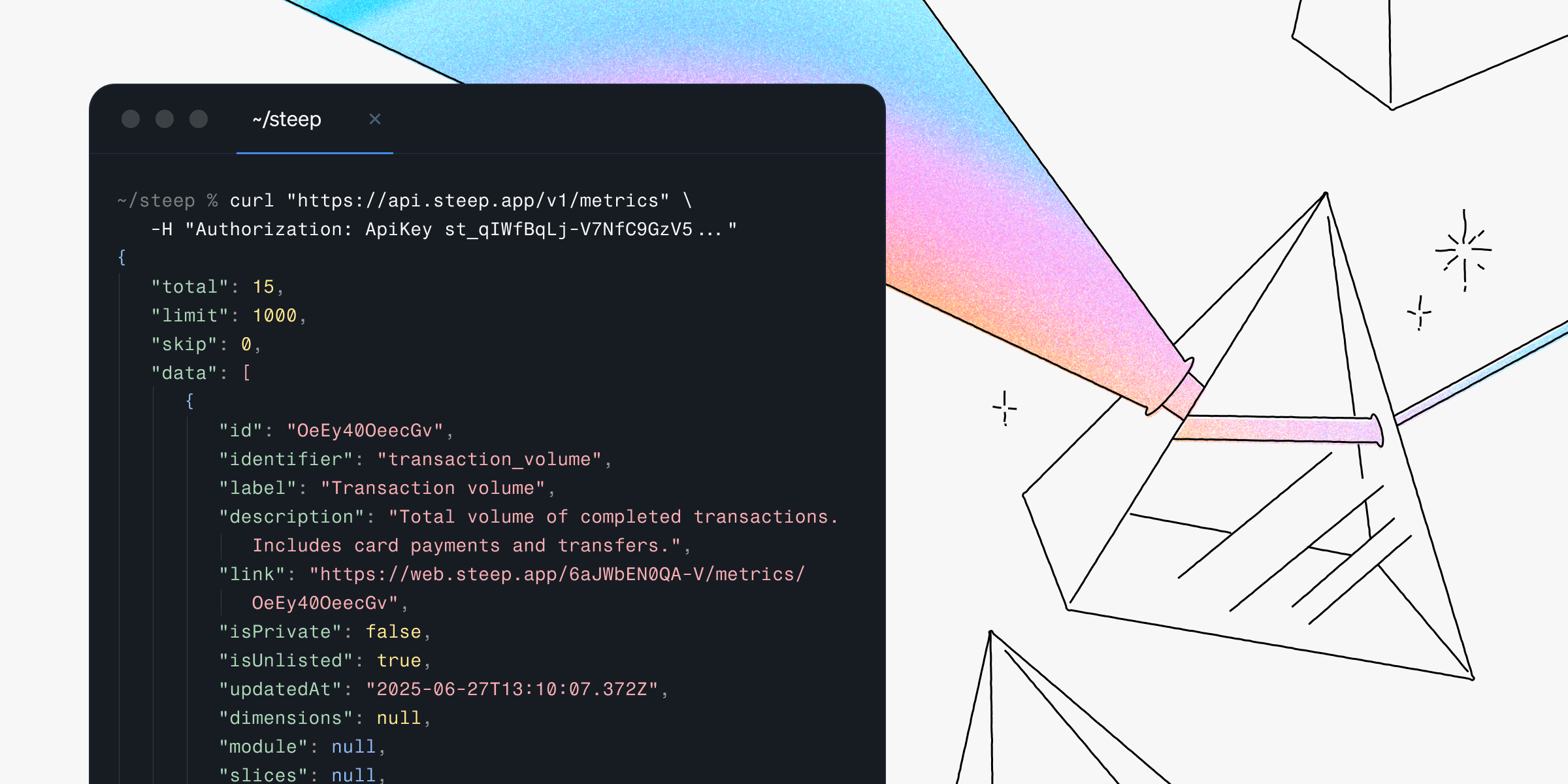Introducing the Steep API, a major release that expands your centrally defined metrics beyond Steep’s UI and into anything you build.
