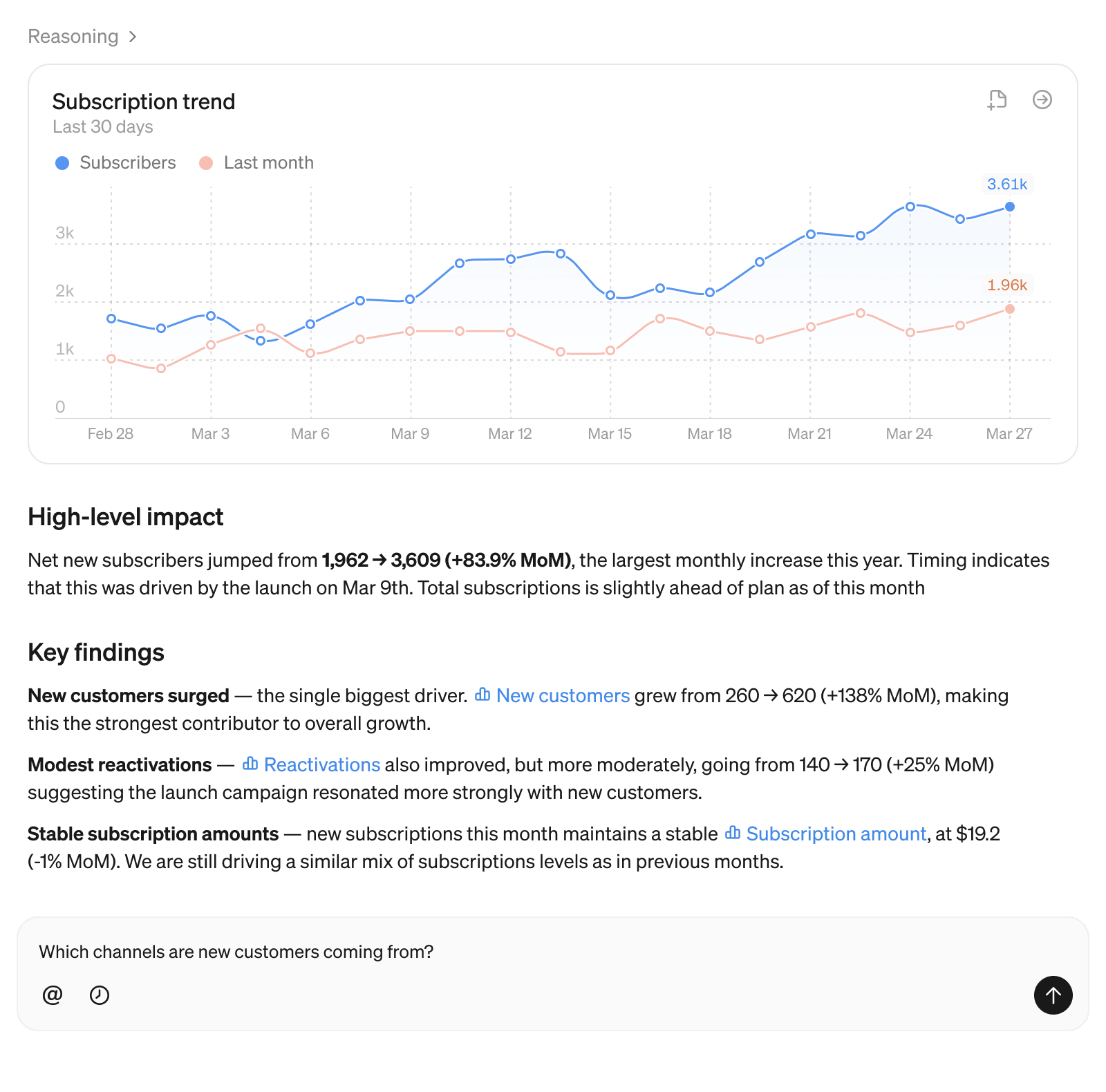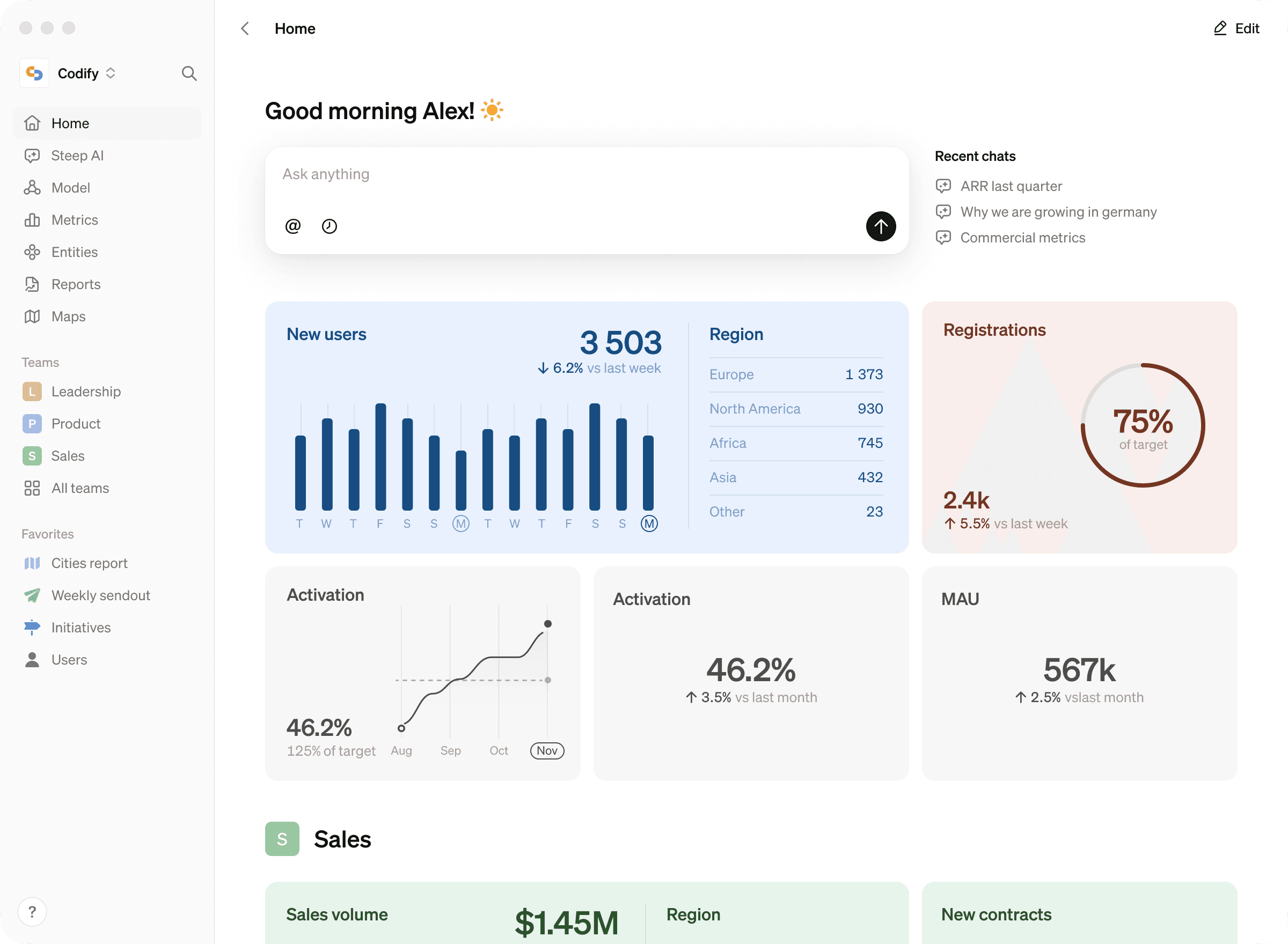 With AI-powered workflows in Steep, anyone can do deep analysis and generate reports. All using trusted metrics.