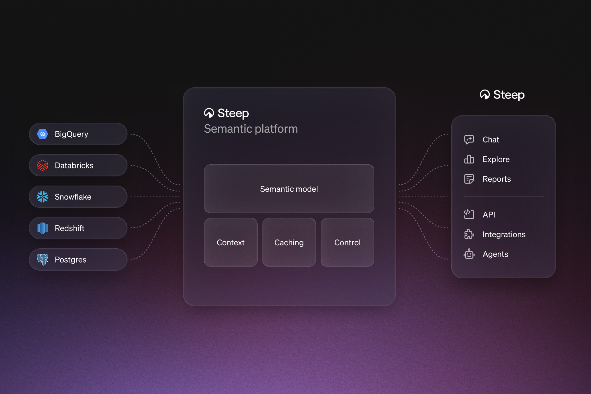 No more building dashboards. With Steep, data teams ship a semantic model with governed metrics, dimensions, and more.